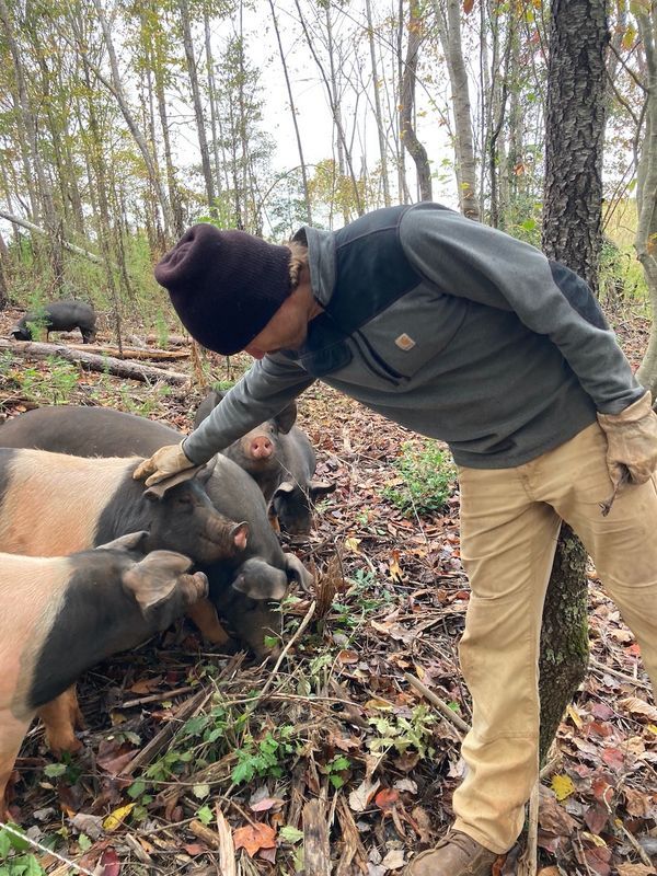 All pork is raised on our farm, foraging fields and woodland and supplemented with Certified Organic and Soy-Free feed. This makes for healthier pigs with a more diverse diet than standard pasture-raised pork, and you can taste the difference!