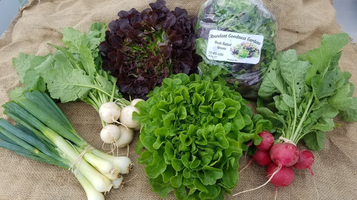 Winter vegetable shares will include a bag of lettuce mix plus one bag of greens and one or two items. Available greens include but aren't limited to spicy lettuce mix, arugula, spinach, tatsoi, radicchio, bok choi, mustard greens, collard greens, senposai, Tokyo Bekena, cabbage and brussel sprouts. Other items include root vegetables both fresh and from cold storage such as carrots, beets, radishes, daikon radishes, leeks and scallions. Culinary herbs parsley, cilantro, chives and chervil may also occasionally find their way into the boxes. Unless otherwise marked, all vegetables and herbs in your box will be grown chemical-free on our farm. Shares are sized for 1-2 individuals who eat home cooked meals regularly. For larger families, purchase multiple shares and the boxes will be packed accordingly.