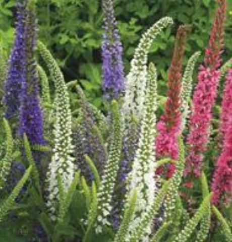 Tall, upright spikes of flowers that come in shades of blue, pink, and white.
