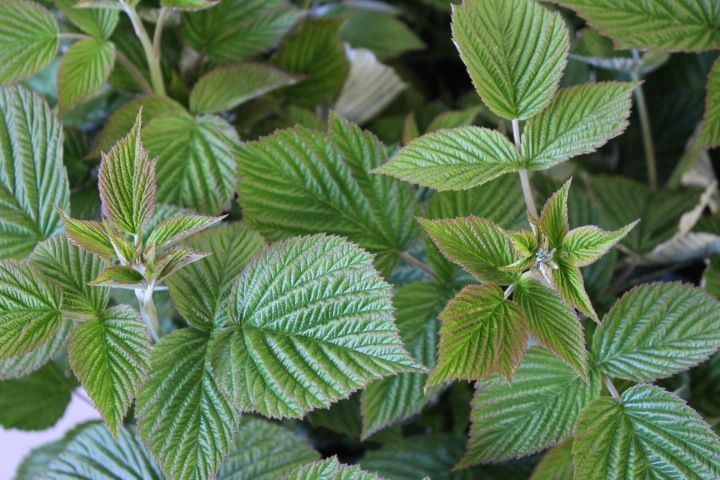 leafy branch of a raspberry plant