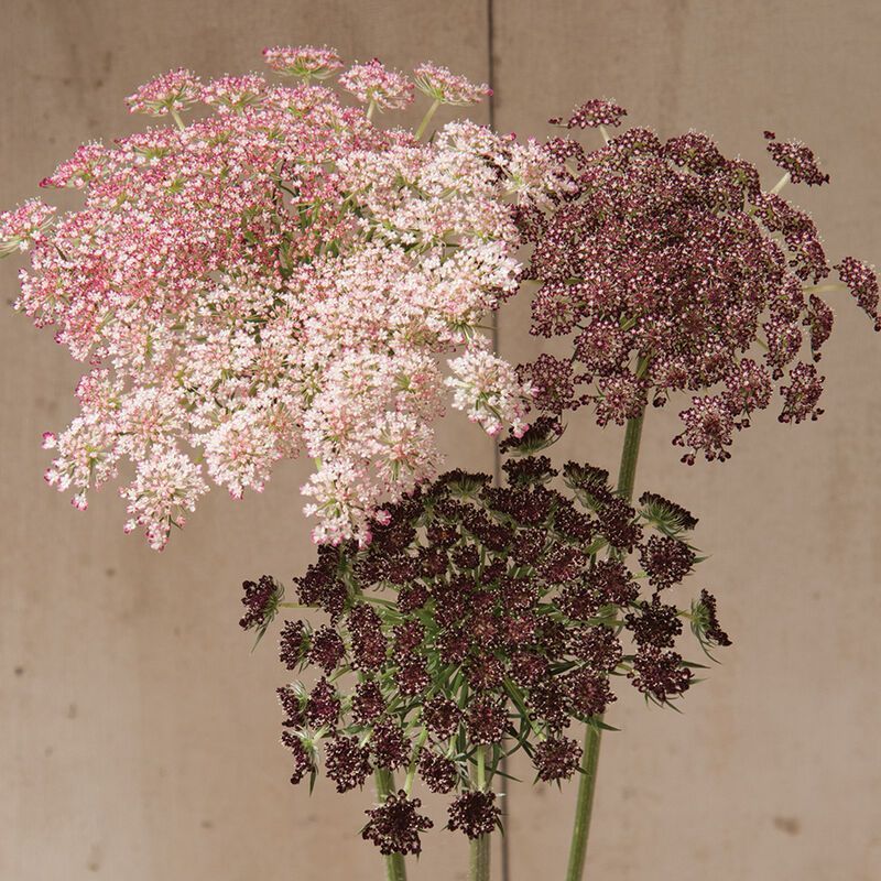 Flowers are small, white, and clustered in flat-topped, dense umbels. Colors ranging from white to purple. 10 stems bunch.
