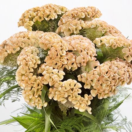Vibrant and distinctive flower heads. These annual plants come in various forms, including the plumed (feather-like) and cockscomb (velvet-textured, brain-like) types, and are popular for their long-lasting blooms. 10 stems bunch.