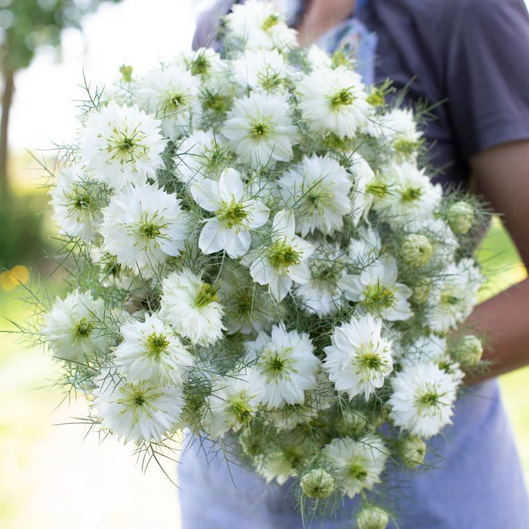Finely divided, feathery foliage and unique, star-shaped blooms. The flowers are typically 1-1.5 inches across and come in a range of colors including blue, white, pink, and purple. 10 stems bunch.