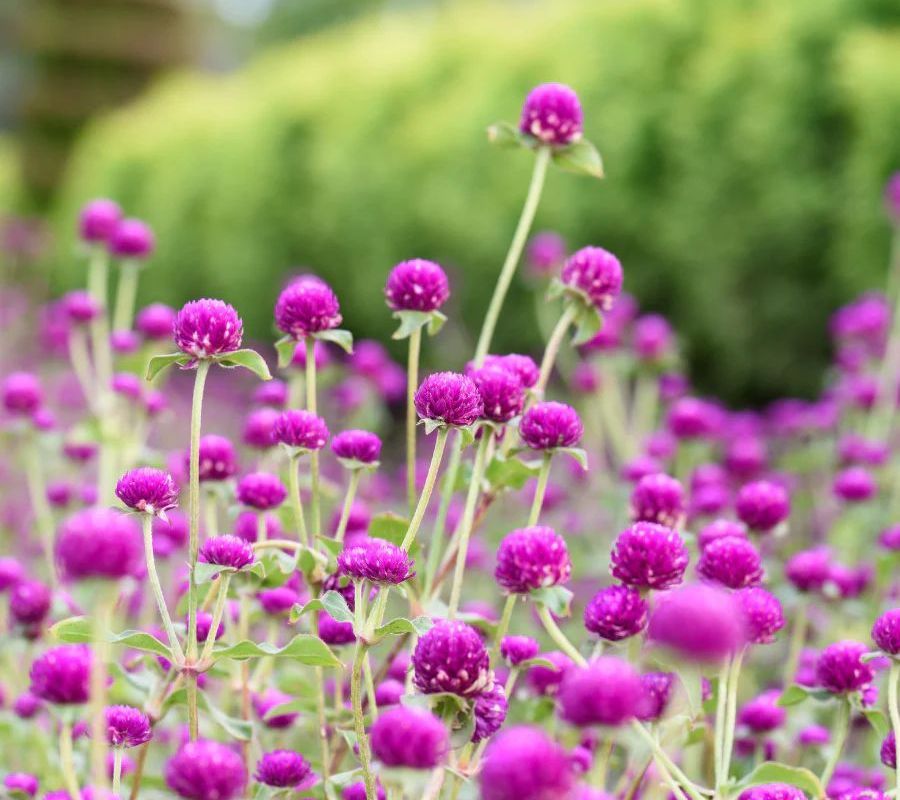 Round, globe-shaped flower heads that resemble small globes. The individual flowers are small and inconspicuous, often white or yellow, but the showy bracts provide bright color. Gomphrena flowers come in a variety of colors, including pink, purple, red, orange, and white. 10 stems bunch.