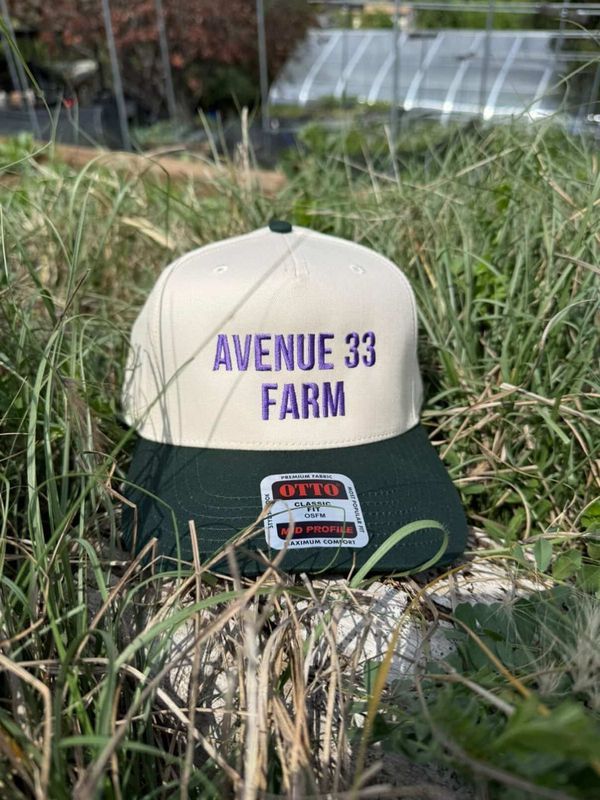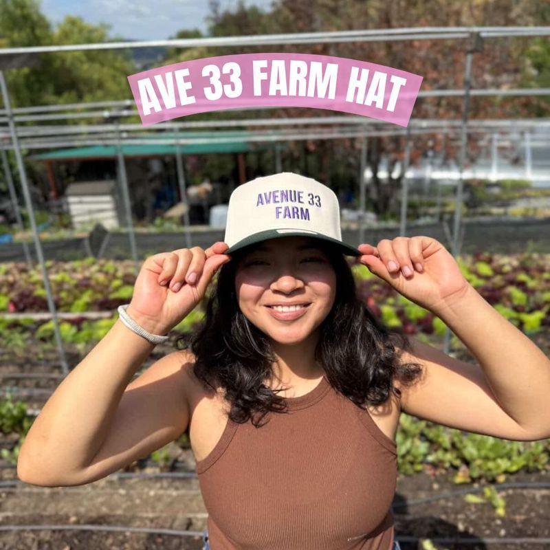Carry a piece of the farm wherever you go with these limited caps. By purchasing this Avenue 33 Farm Hat, you are supporting Avenue 33 Farm's mission of expanding food access in Lincoln Heights, building a local food hub, and investing in current and future regenerative farmers.