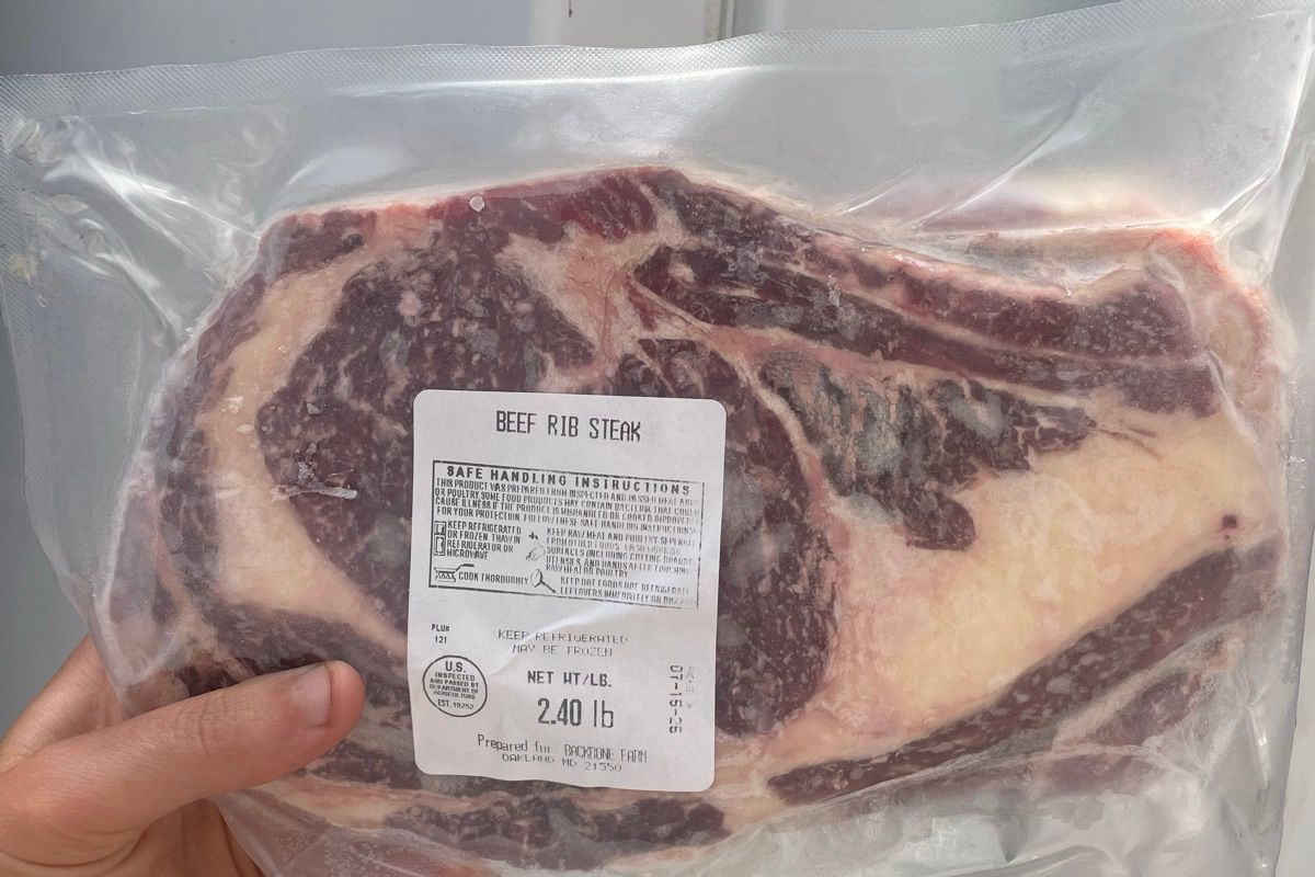 Bone in Rib Steak, same cut as the ribeye, but with a bone. Beautiful fat marbling, ready to melt in your mouth. a perfect grilling steak.