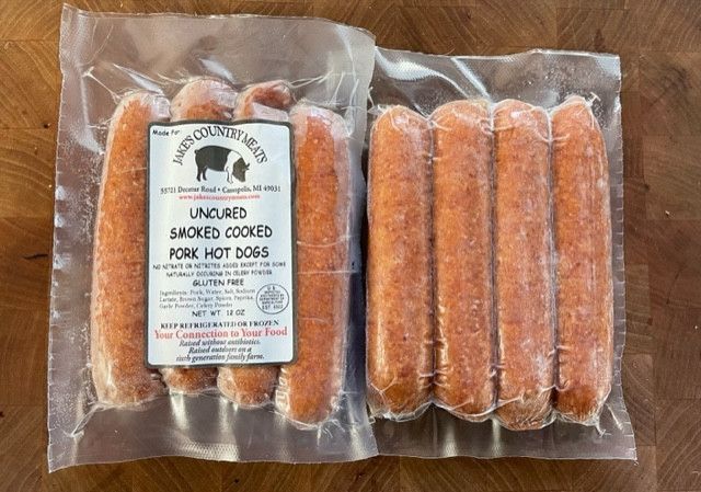 Pork Hot Dogs: 4 links per package – 12 ounces