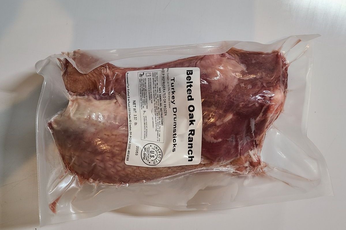 Nutrient-dense, non-GMO-fed turkey drumsticks raised on our small regenerative farm. Approximately 3 pounds per pack/2 bone-in skin-on turkey drumsticks per pack