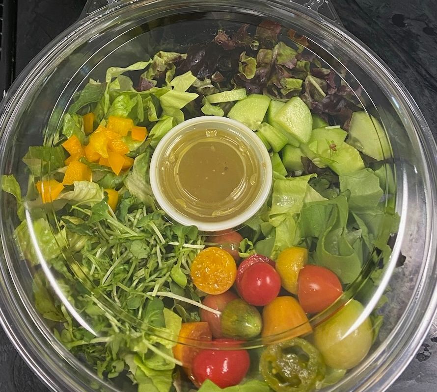 Salad Bowl for ONE Includes: Buttercrunch Red Oak Leaf Mini Romaine Other seasonal vegies Microgreens Homemade Greek Dressing