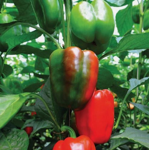 This pepper grows green and then matures to a vibrant red. Variety Name - Yolo Wonder