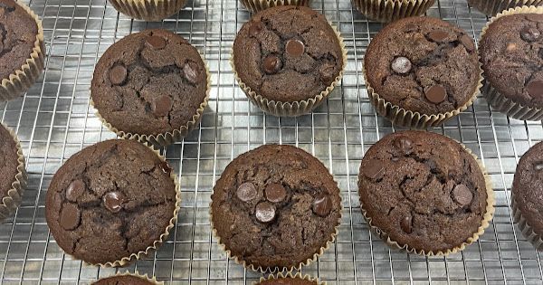 Delicious chocolate muffins with dark chocolate chips. You'll never know our summer squash is the #1 ingredient!