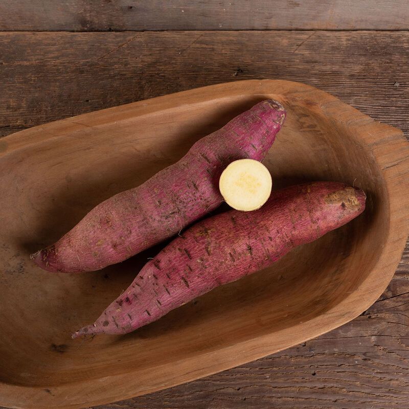 Muraski sweet potatoes are a Japanese heirloom variety known for their pale, creamy flesh.
