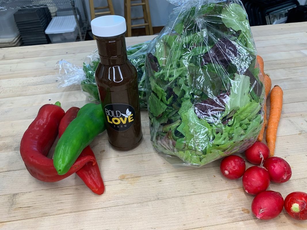 Bold Love Farm & Bakery is a certified organic market garden and permaculture orchard in Frederick County in Mount Airy, Maryland. We use our organic produce in our prepared foods, including soups, salads, hummus, dips, flatbreads, and more! We also have a bakery on the farm, focusing on rustic sourdough breads, pastries, cookies, and all sorts of deliciousness.