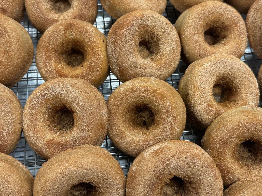 baked cider donuts dredged in cinnamon sugar