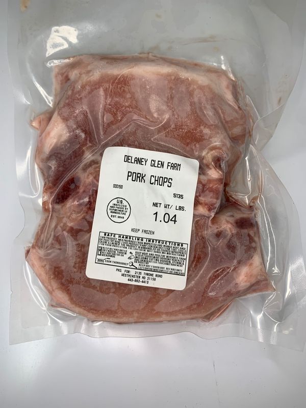 These pork chops come from pigs born, raised, and grain-finished on Delaney Glen Farm in Westminster, MD. Processed at a USDA-approved facility and vacuum-sealed before freezing, they offer clean, reliable quality with great flavor—perfect for grilling, pan-searing, or roasting.