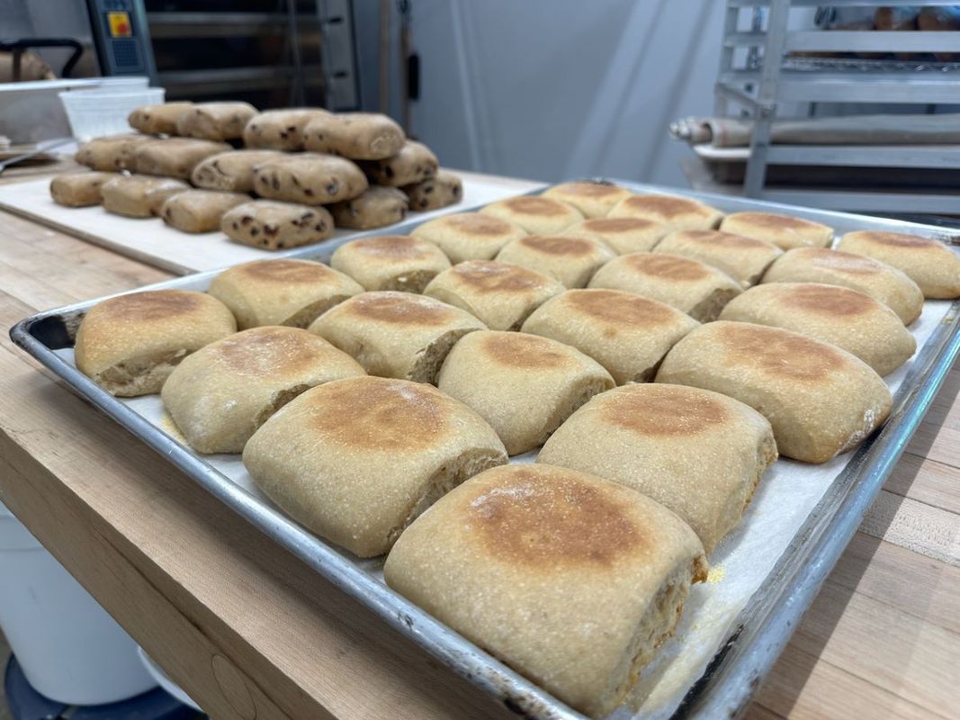 These sourdough English muffins are baked, giving them a soft, tender crumb and a mild, pleasant tang. The ultimate in versatility, they're perfect for breakfast, lunch, and dinner, whether as part of a sandwich or on their own.