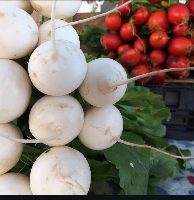 Around 2 lbs. of root vegetables โ Carrots, Radishes, Onions, Salad Turnips, Beets, and other seasonal favorites