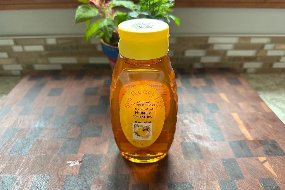 Raw Minnesota wildflower honey. Use this raw honey for baking, desserts, a sweetener in drinks and in place of sugar.