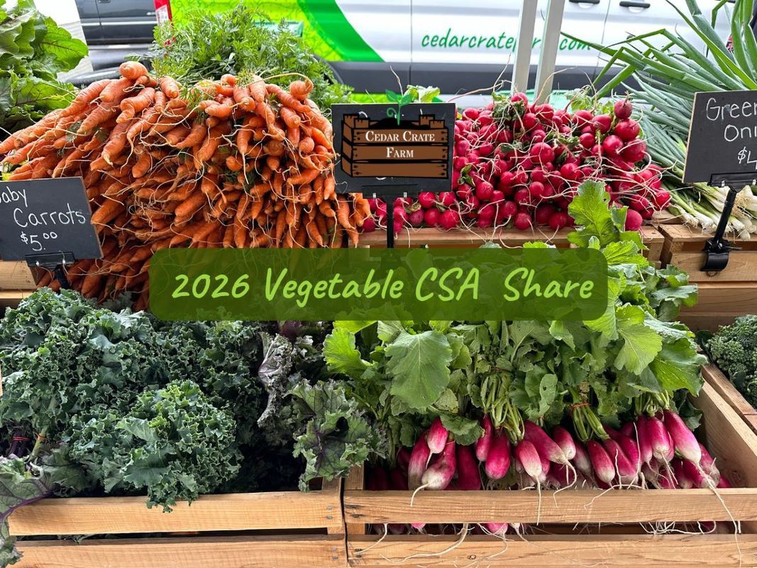 Cedar Crate Farm is a small, family owned CSA and market farm located southeast of Mankato, Minnesota. We use organic and sustainable practices to grow over 90 varieties of vegetables on our 3 acre vegetable farm. We love growing fresh, nutrient dense, deliciou produce that we share with our community through the our online store, the Mankato Farmers Market, our CSA, and our wholesale partners. Seriously, we love the superior flavor that you get from fresh, local produce. It makes the food we eat taste incredible and we rest easy knowing exactly how our food was produced. We offer a variety of ways to access our produce. Shop our online store here on GrownBy and choose one of our convenient pickup locations including on our farm in Waldorf, MN, at the Saint Peter Food Co-op and at the Mankato Farmers Market. We also offer free home delivery!