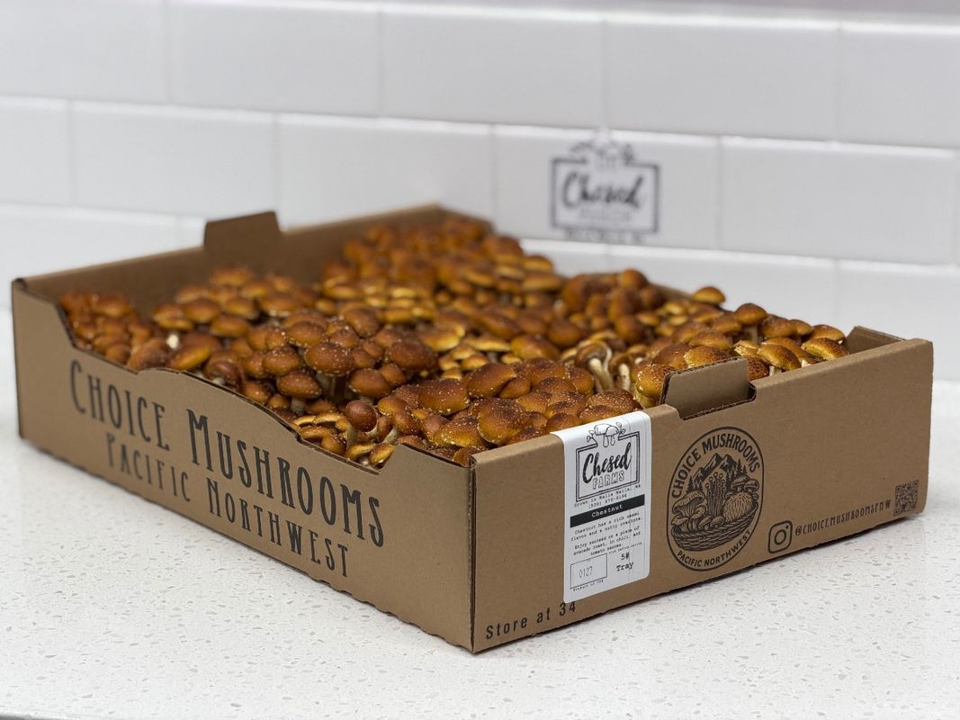 This mushroom has a unique make up, so after the cooking process it maintains a very particular texture, almost crunching. The mild earthy flavor has notes of a peppery finish, and the texture excites an average dish with variation and plays very well in creme sauces. It excels in miso and other brothy soups; or add it to a stir fry or substitute into your favorite sauce recipe. It can also be seared with garlic and oil or butter and added atop salad or in spring rolls. Home Delivery & Pick Up Location Schedule: College Place - Same Day Delivery* Walla Walla Southgate - Same Day Delivery* Walla Walla Eastgate - Same Day Delivery* Milton Freewater - Thursdays Waitsburg & Dayton - Thursdays For Tri-Cities delivery, please Visit Walla Walla Food Hub to order: https://www.wallawallafoodhub.com/Products?search=Chesed *Same day delivery available for College Place & Walla Walla when you order by 1:00 p.m. View all delivery and pick up locations when you add items to your cart. Check your delivery area here: https://images.squarespace-cdn.com/content/v1/618d4e2870670519781323fb/7c6ec56d-613e-4f20-9c68-5c2a200b7954/Delivery+Map.jpg?format=1500w