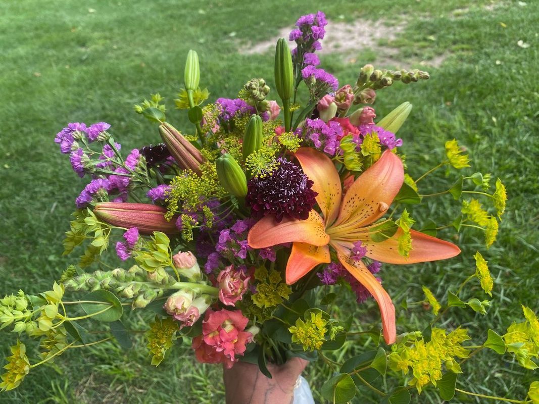 The flower share runs from the beginning of June until the end of September. Each week you receive a seasonal bouquet of fresh, long-lasting, organic flowers. Our flowers articulate the beauty of the ever-changing season, capture our attention, and mesmerize us with the simplicity and complexity of what does work so well in this world. Find more information about the Flower CSA at christopherfarm.net/CSA