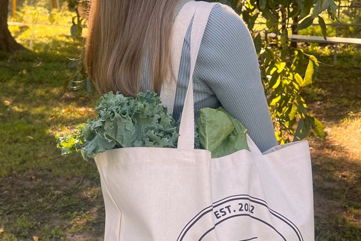 Washable/reusable canvas grocery tote bag.