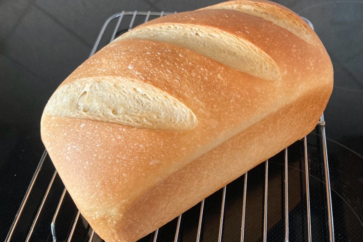 Soft sourdough sandwich loaf. Organic wheat flour, whole milk, butter, honey, salt. In addition to being a great sandwich bread, it also toasts very nicely.