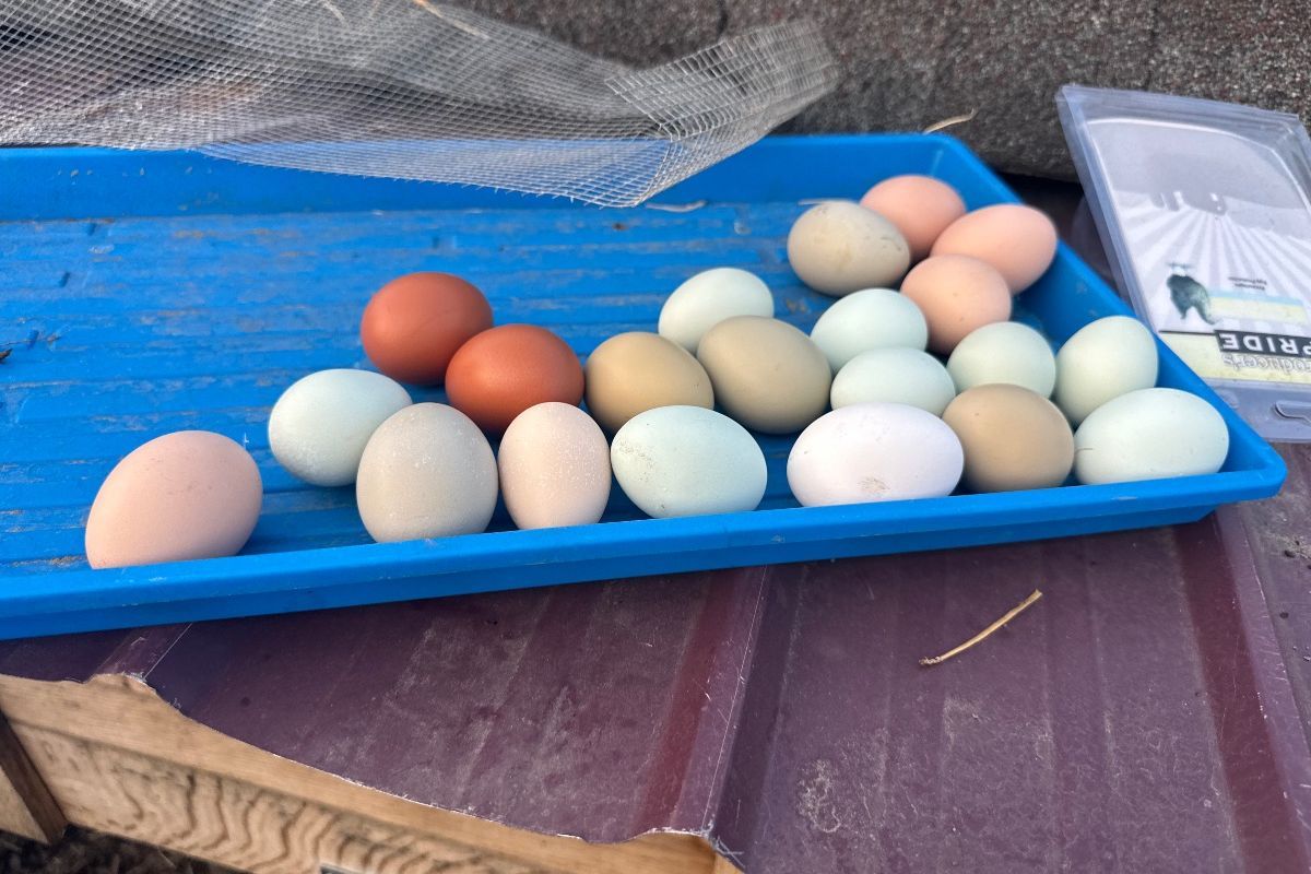 Enjoy our rainbow farm fresh eggs. Our eggs are unwashed, and last in the refrigerator up to 6 months, or out on the counter for 3. $7 per dozen Pickup at Chevy Chase Farmer’s Market 9-1 Saturdays or At the farm Sundays 11-2