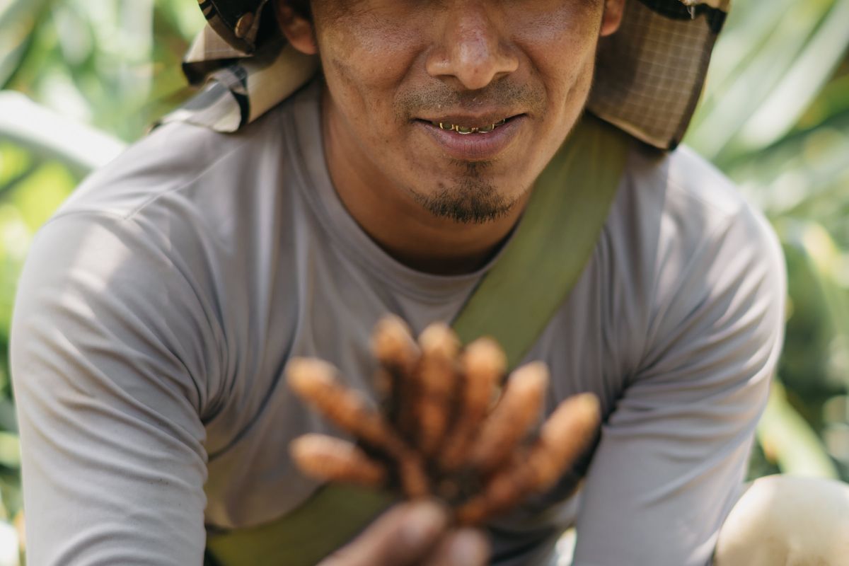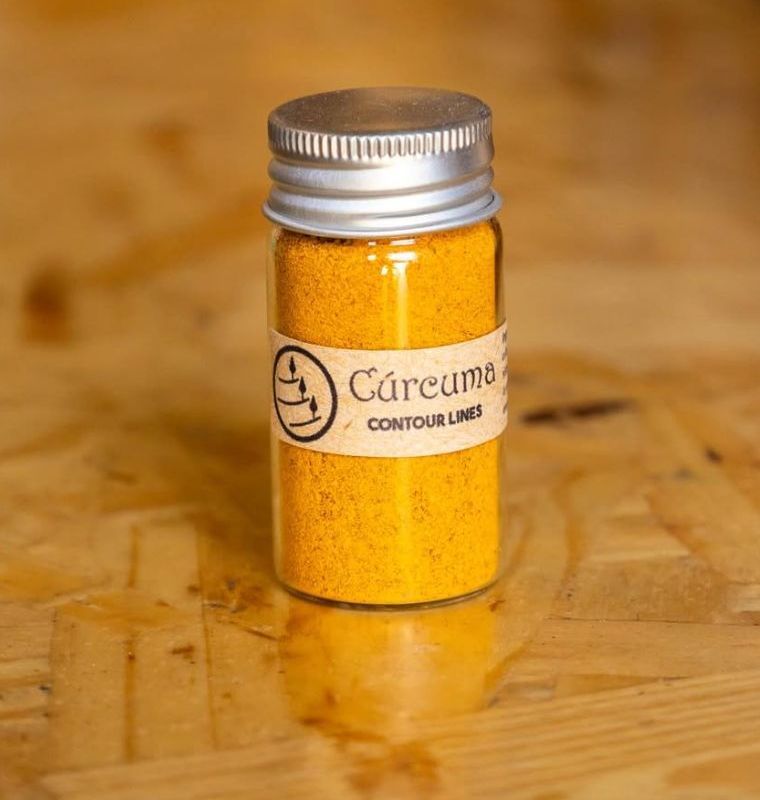 Turmeric root grown by indigenous farmers in eastern Guatemala in the understory of agroforestry systems and dried and powdered by Contour Lines Center, Antigua.