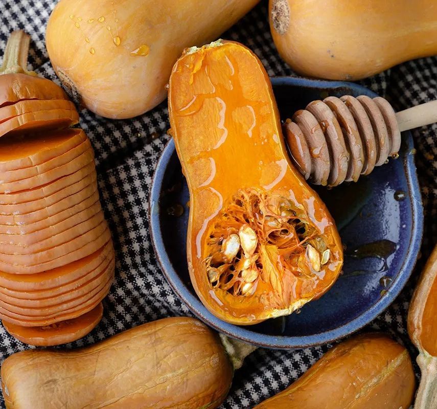 "A mini butternut squash with a gourmet pedigree, widely regarded as one of the best-tasting squash of all time! This squash reaches just 4 to 5 inches long, making a single serving size and quicker to roast whole! Bred by renowned vegetable breeder Michael Mazourek of Cornell. Sugar sweet taste and such deep orange flesh. A sweet treat that is easy to grow!" rareseeds.com