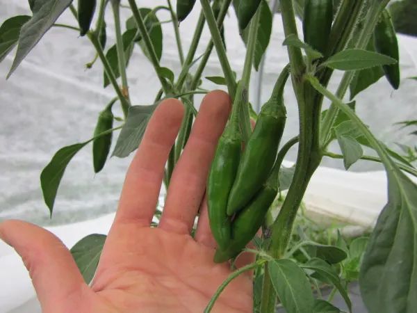 "Serrano is a great hot pepper with punchy heat. A great pepper for use raw in fresh salads, salsas and sauces. They also make a great pickled pepper. Plants can get large and weighed down with fruit, stake to keep branches in place and fruits off the ground. Serranos are usually picked green, but are also good when allowed to ripen red."- Hudson Valley Seed Co.