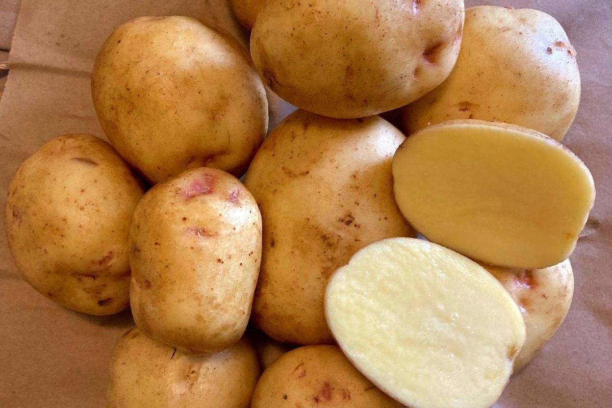 Natascha-Early maturing yellow-skin, yellow-flesh potato which is known for its high yielding qualities with many tubers per plant. This variety is very beautiful with a buff light golden skin, and a delicious flavor and a creamy texture. Very versatile for cooking. Moderate resistance to late blight and scab.