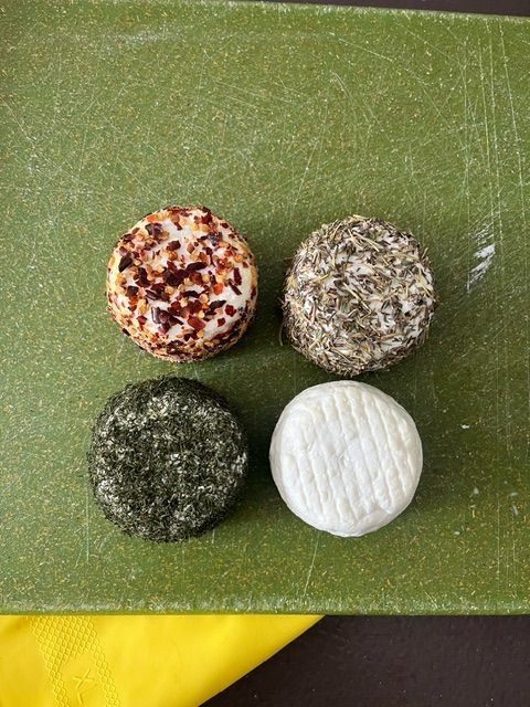We take our fresh chevre buttons and roll them in various herbs and spices. Try them for a delicious twist on the original Chevre!