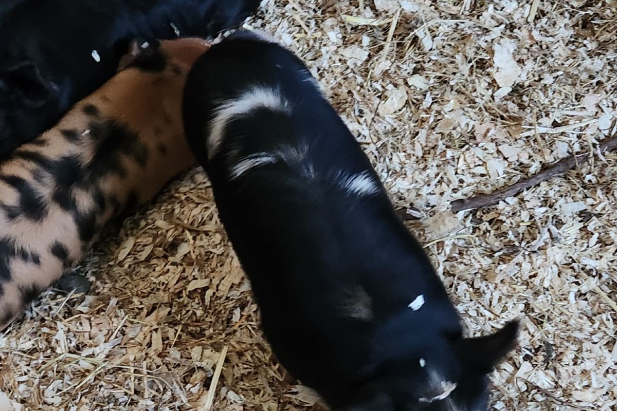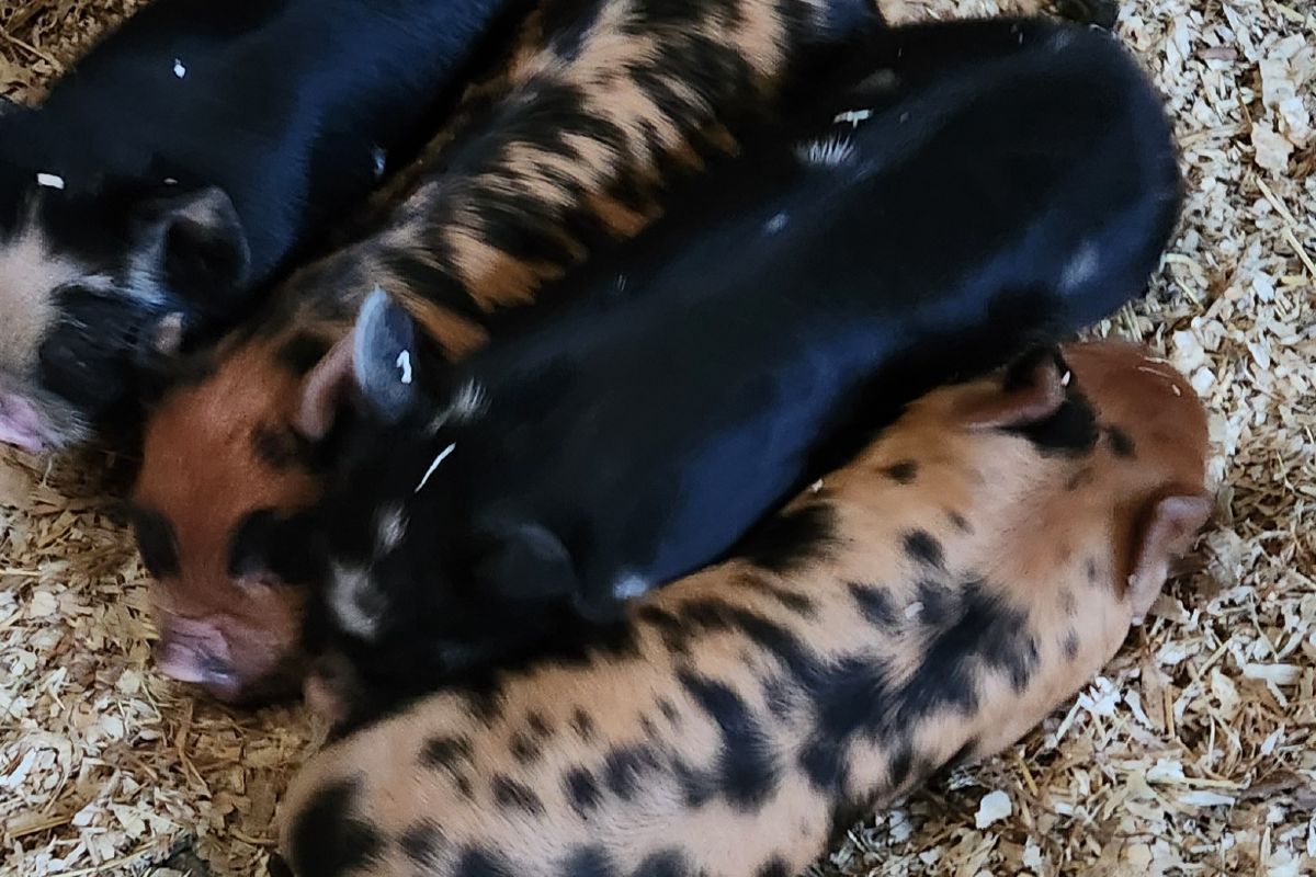 Kunekune piglets are a barrel of fun! New Zealand Kunekune pigs are perfect for any family, any owner. As long as you feed them grass, veggies, fruit, and nuts, females maintain their weight to a maximum of 125 lbs. They remain very mobile. They are the only pig breed that does not root up the grasses. They are not susceptible to predators. They are very smart. They need very little shelter. They love humans. They will keep your toddler remarkably busy. They will flop over and demand you scratch their bellies.