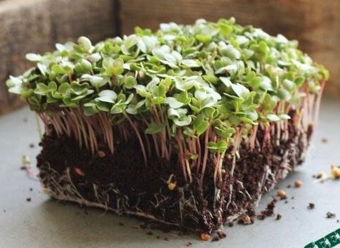 Radish microgreens have a vibrant pink stem with a deep green top, flavor is spicy & floral with a hint of sweetness. Excellent source of Vitamins A, B, C, E, & K, folic acid, niacin, potassium, iron, phosphorus, pantothenic acid, calcium, magnesium, zinc, carotenes.