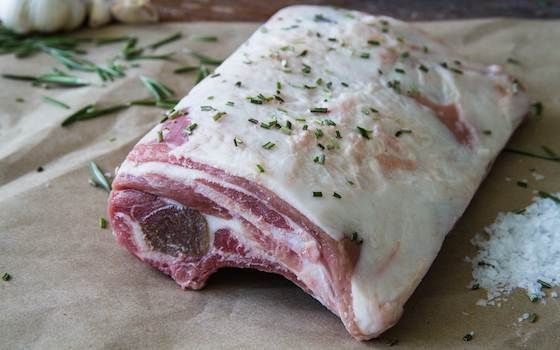 Rack roasts have cap on, chine bone removed. Primarily grass fed with molasses and minerals. Frozen, wrapped in white freezer paper and zip loc bagged. Tender and juicy.