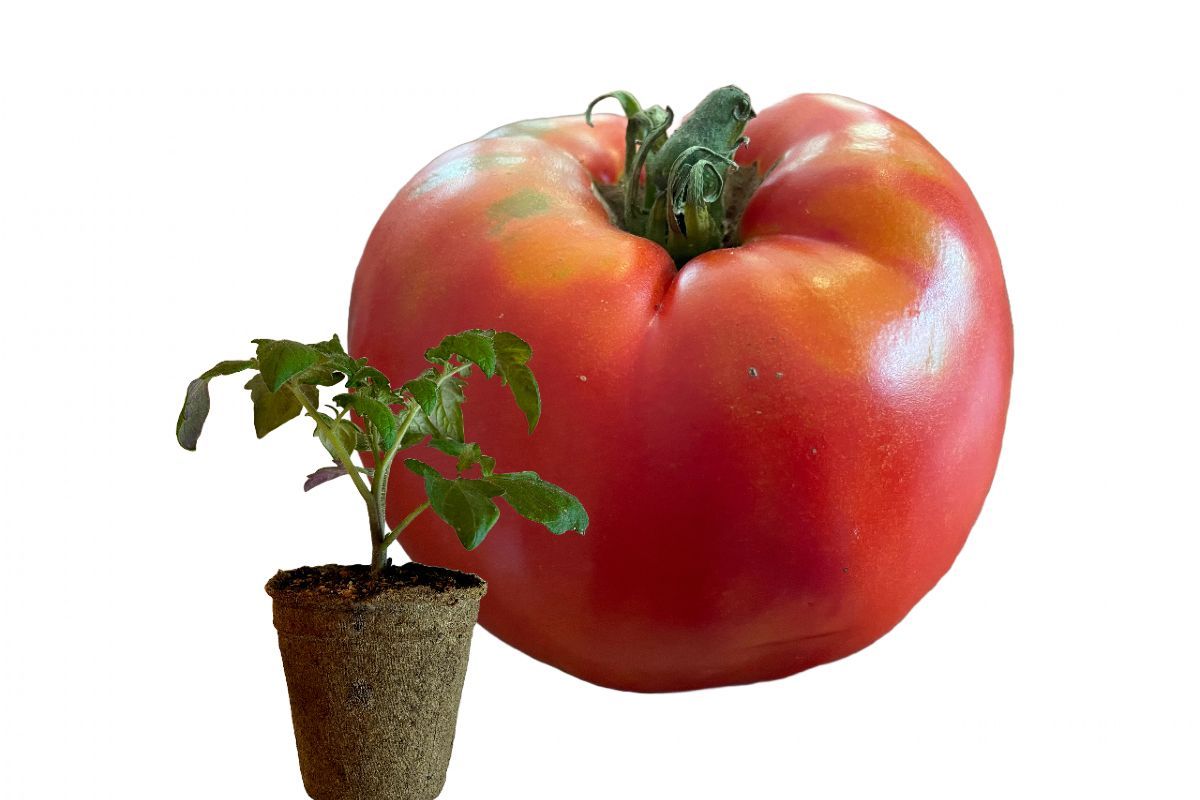 - Extra-large bright red fruits grow to 16+ ounces. - Equally good for sauce or slicing. - 70-80 days from transplant - Indeterminate An extra large red tomato equally good for sauce or sandwiches. Indeterminate.