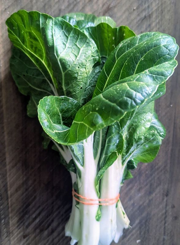 Crisp white stems and dark green leaves with a mild, slightly sweet flavor. Excellent in stir-fries, soups, or sautéed with garlic and soy sauce. The stems stay juicy while the leaves turn tender, making it one of the most versatile greens in the kitchen. Each bunch is ~12 oz, good for 3-4 people as a side.