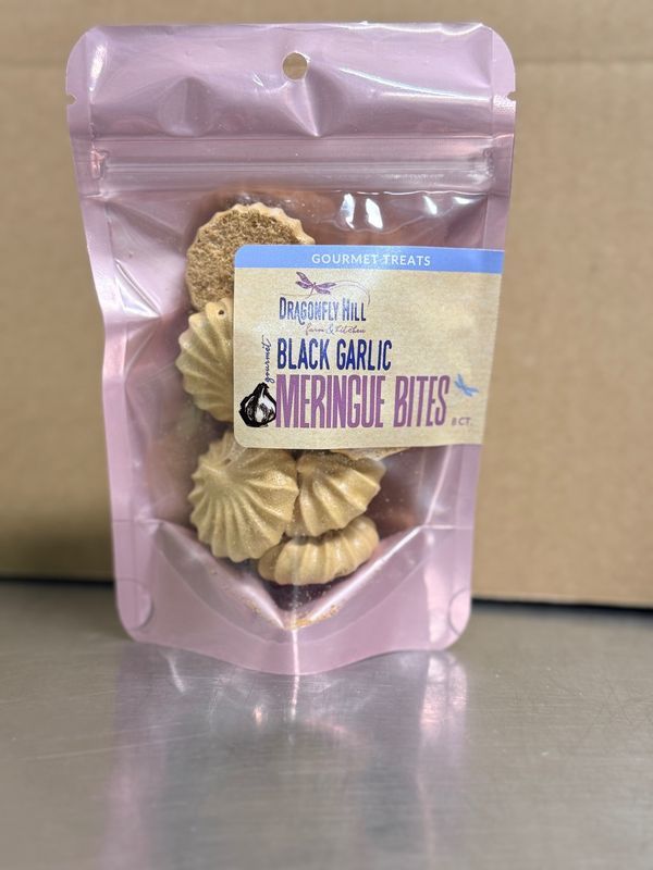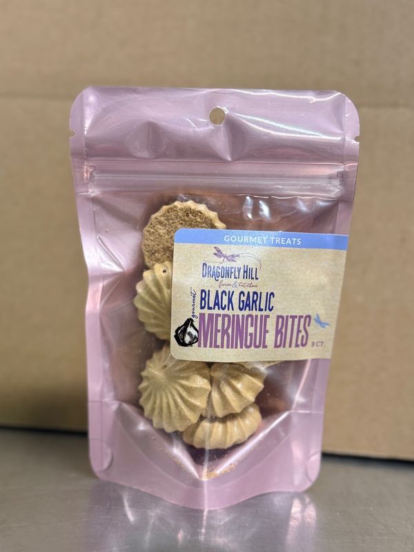 Light, crisp, and delightfully unexpected, our Black Garlic Meringues bring together sweet and savory in a truly unique way. Made with our organic, heirloom, hard-neck garlic, we first transform the garlic into black garlic by aging it for several weeks in a specialized unit. Through the Maillard reaction, the garlic develops deep notes of caramel, molasses, and balsamic-like richness.