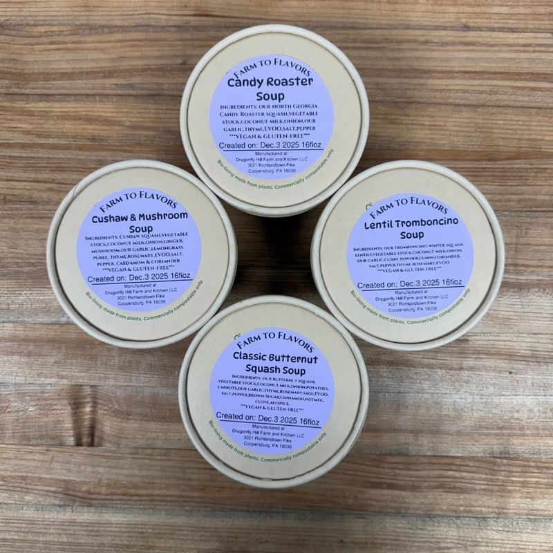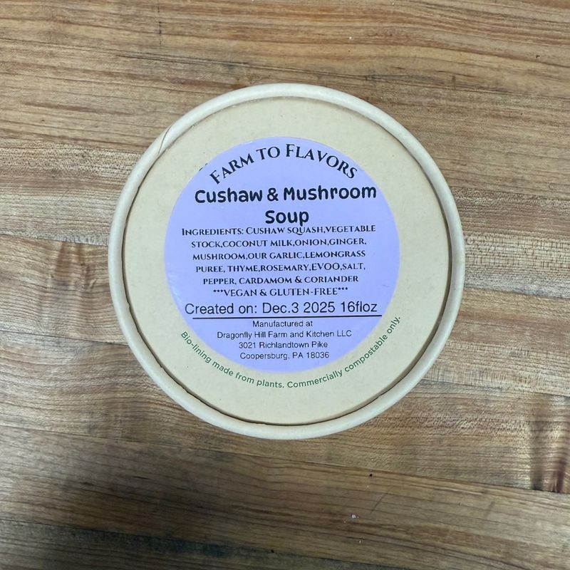 Cushaw Squash, vegetable stock, coconut milk, onion, mushrooms, ginger, our garlic, lemongrass puree, thyme, rosemary, EVOO, salt, pepper, cardamom, coriander **VEGAN & GLUTEN-FREE**