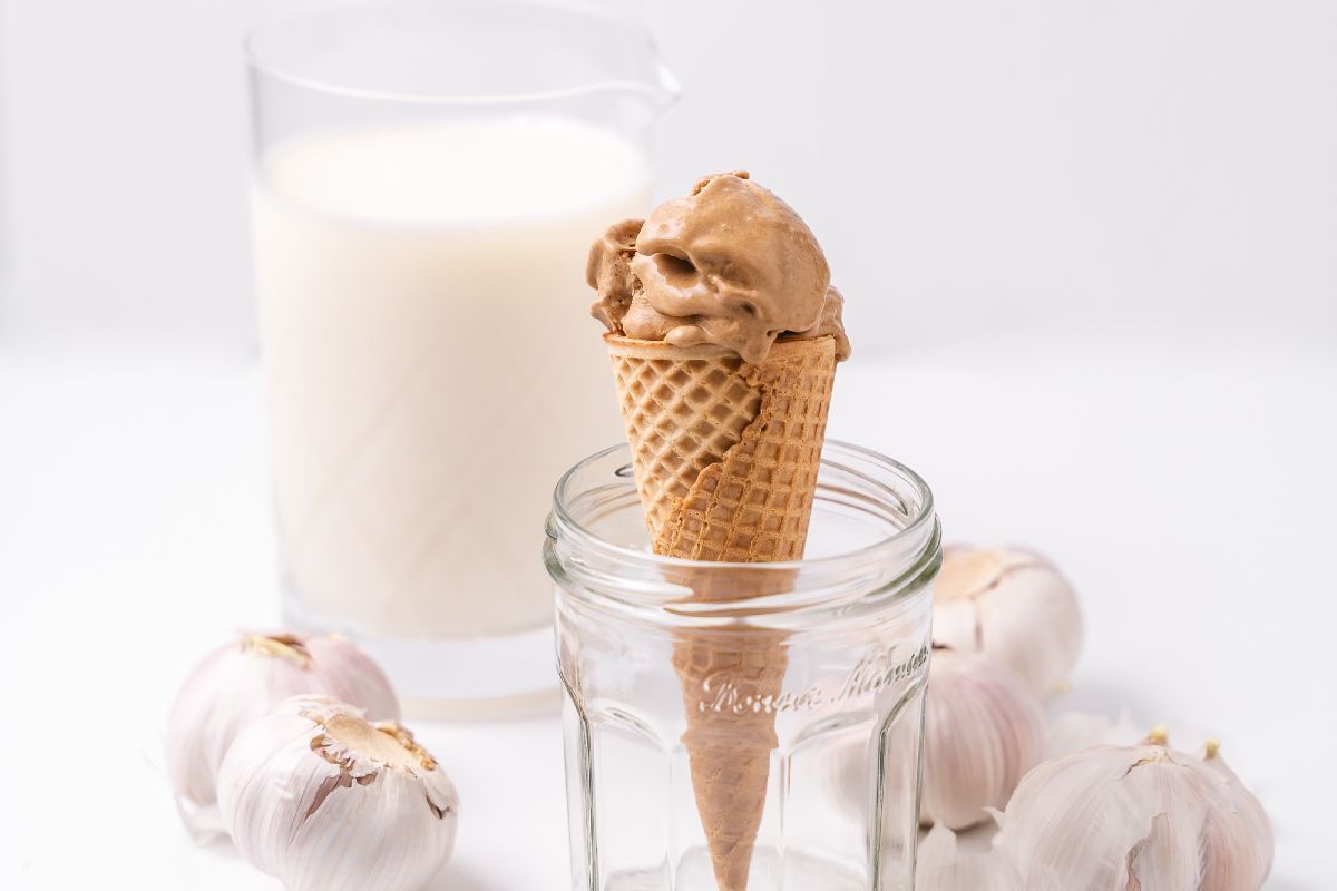 A bold fusion of sweet and savory, our Black Garlic Ice Cream is a one-of-a-kind treat that surprises and delights. Made with our organic, heirloom, hard-neck garlic, carefully aged in a black garlic fermentation unit for several weeks, the result is a rich, umami-packed purée created through the Maillard reaction. This deepens the garlic’s natural sweetness, bringing out notes of caramel, molasses, and balsamic richness.