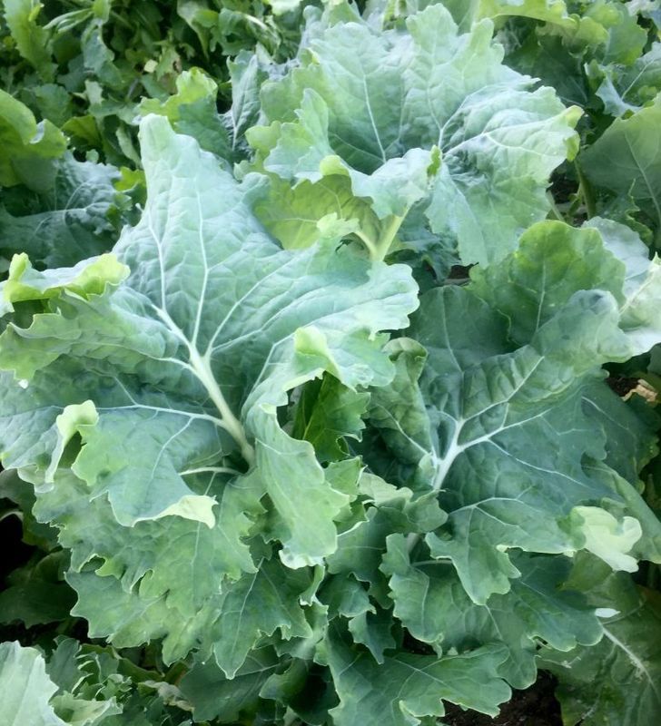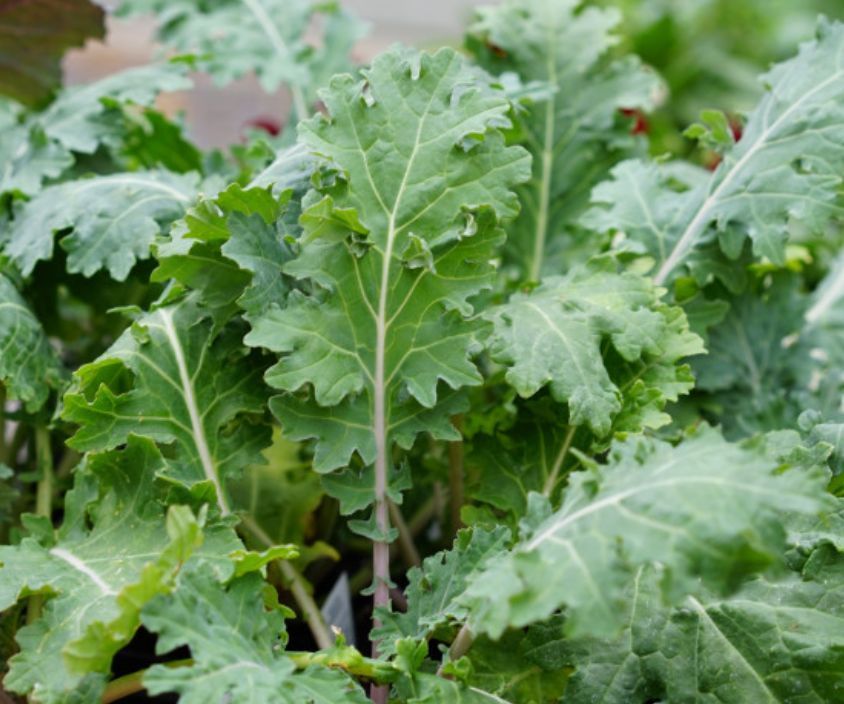 A fresh bunch of mixed kale featuring curly kale, red Russian kale, and Siberian kale. This blend offers a variety of textures and flavors—from robust and hearty to tender and slightly sweet—making it perfect for salads, sautéing, soups, smoothies, and kale chips.