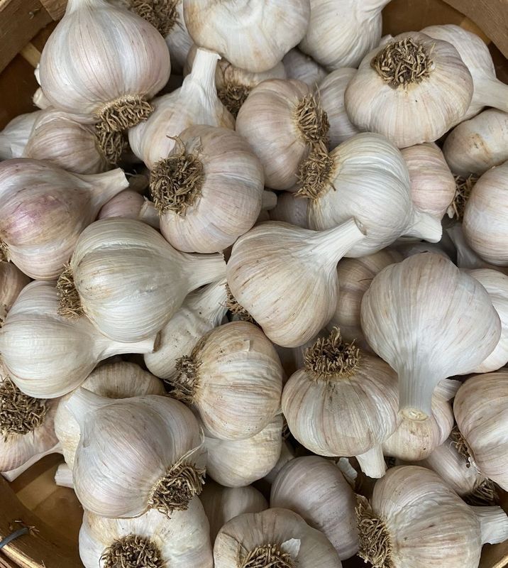 Hard neck garlic. Buy single heads or get bulk pricing by ordering 3 pounds to stock up for winter!