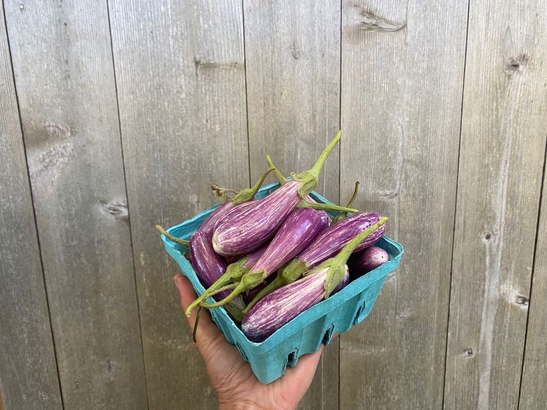 Miniature eggplant that are creamier and slightly less bitter than traditional eggplant.