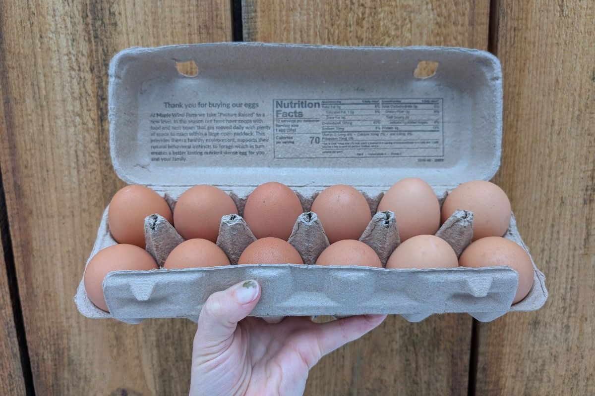 1 dozen of fresh, Organic, pasture raised chicken eggs from Latremore Farm.