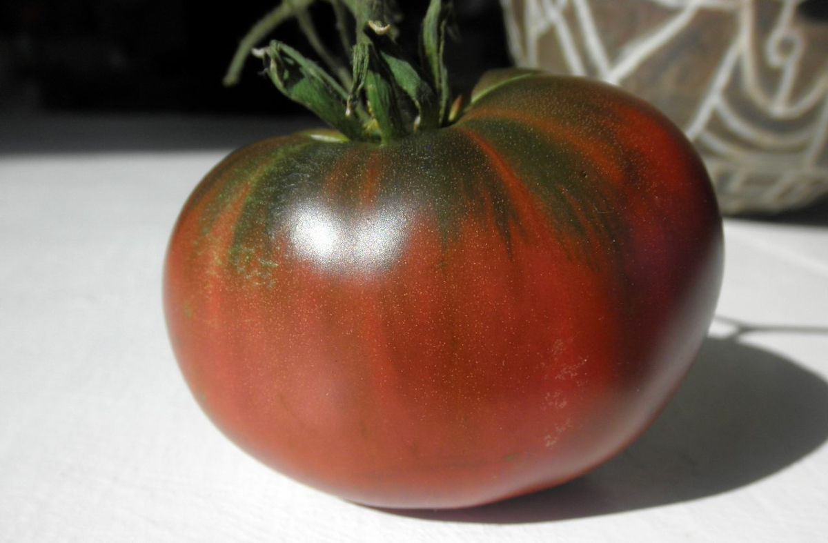 A Russian heirloom named after the opera singer and equal rights advocate. Paul Robeson tomato is well known among tomato connoisseurs as having a distinctive smoky flavor with a perfect acid to sweet balance that is delicious. The dusky brick red fruit have green shoulders and average 8-10 ounces. Indeterminate, regular leaf foliage. 80 days. Sold in a 4" pot.