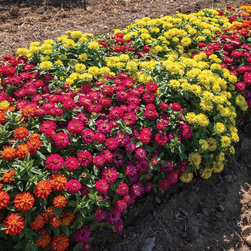 Compact zinnias with fully double blooms in bright summer colors. Exceptionally heat- and disease-tolerant plants that flower nonstop in beds, borders, and containers. Height: ~12–18". Sold in a 4-pack.