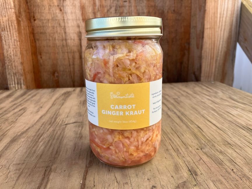 Locally fermented veggies found at your favorite Portland farmers markets. Check out their Instagram here: https://www.instagram.com/thefermentista Contains cabbage, carrot, salt, ginger.