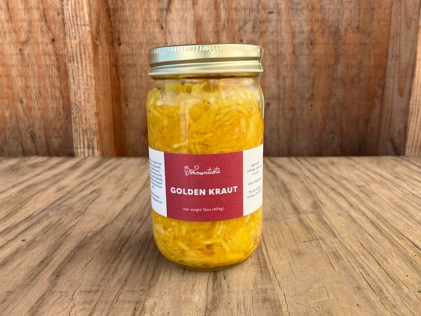 Locally fermented veggies found at your favorite Portland farmers markets. Contains cabbage, golden beets, salt, turmeric.