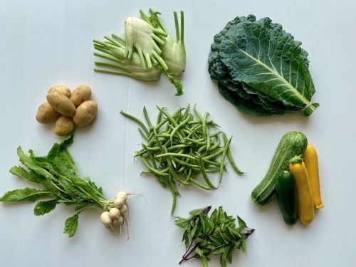 - We emphasize popular, easy-to-use, seasonal vegetables in our crop offerings, with a few more unusual ones thrown in for variety. Think springy crops like salad greens, herbs, scallions, snap peas, and baby carrots, or early summer favorites like new potatoes, broccoli, fennel, and summer squash.